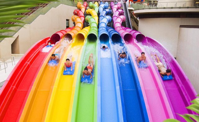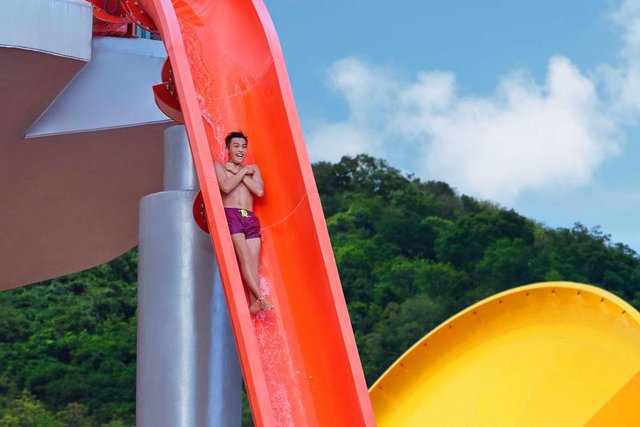 隱藏於一片大自然當中的是亞洲首個,亦是全年開放的全天候臨海水上樂園,只需幾分鐘便可遠離繁華鬧市,全情投入滿載刺激樂趣的冒險之旅。這裡設有五個主題各異的休閒玩樂區,不同刺激驚險程度令你尖叫不斷。你可從毗鄰南區海岸線的「歡樂堡礁」出發,熱情的團隊將歡迎你的到來,投入大自然美景懷抱中,展開水上探險。首先由「躍動流域」開始體驗腎上腺素飆升的快感,在迂迴曲折的「急轉雙子梯」和「旋風雙子梯」感受旋轉急彎帶來的強大離心力。「八彩天梯」適合與同行家人或友伴比拼極速滑下,再一同坐上巨型水泡衝過「急流漩渦」和「神秘迷沖」,感受驚心動魄的的刺激衝力!